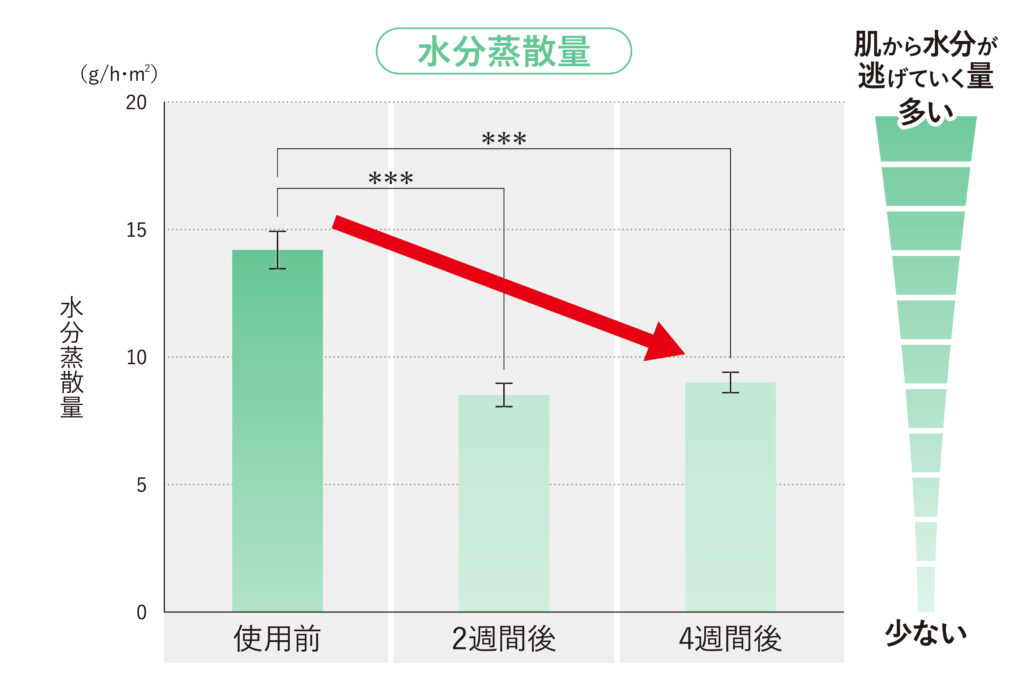 *3) 水分蒸散量:角層を通じて体内から揮散する水分量のこと。低い方がお肌のバリア機能が整った良い肌状態と考えられる。
