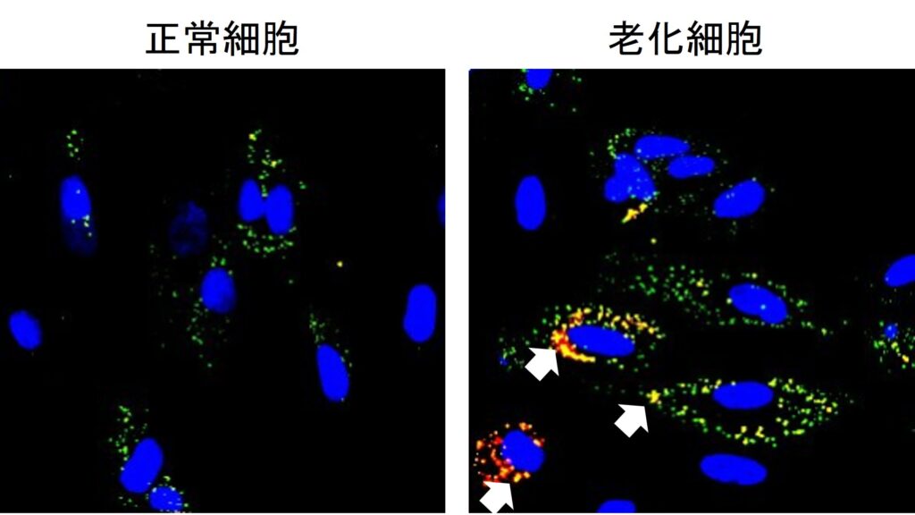老化細胞は、加齢とともに体内に蓄積する分裂を停止した細胞です。これらの細胞は炎症を引き起こす物質を放出し、周囲の健康な細胞に悪影響を及ぼし身体の機能低下や様々な病気の原因になると考えられています。